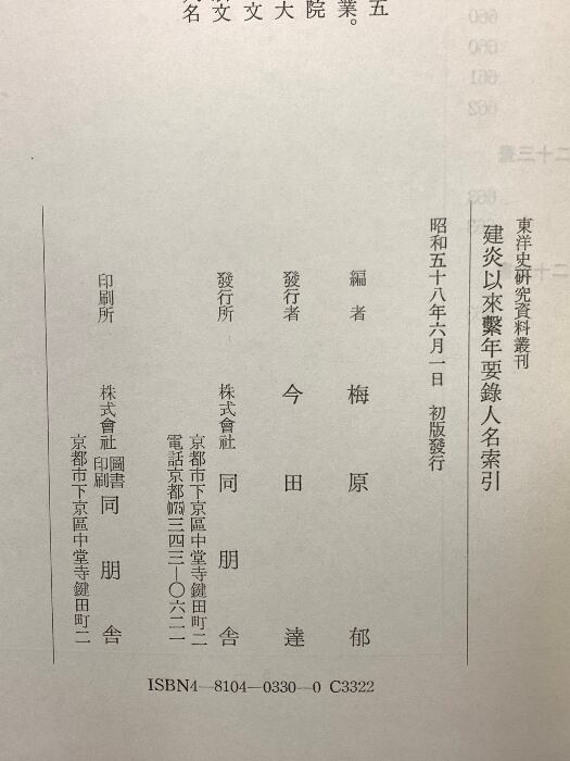 タイトル:建炎以来繋年要録人名索引 (東洋史研究資料叢刊) 角川書店(同朋舎) 梅原 郁