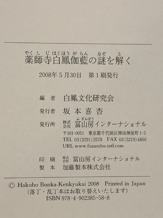 薬師寺 白鳳伽藍の謎を解く 冨山房インターナショナル 白鳳文化研究会