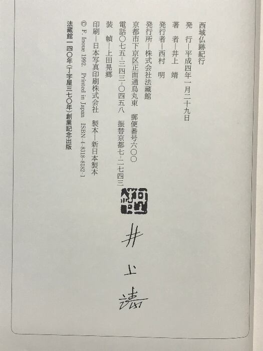 タイトル:西域仏跡紀行 法蔵館 井上 靖