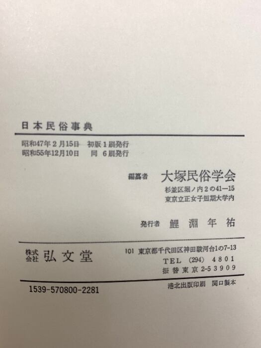 タイトル:日本民族事典 大塚民俗学会編 弘文堂