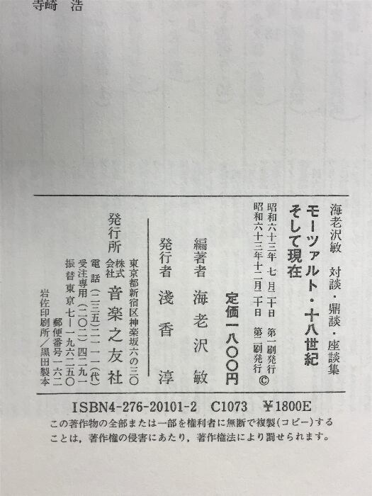 モーツァルト/18世紀そして現在 音楽之友社 海老澤 敏