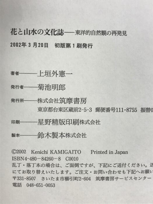 タイトル:花と山水の文化誌: 東洋的自然観の再発見 筑摩書房 上垣外 憲一