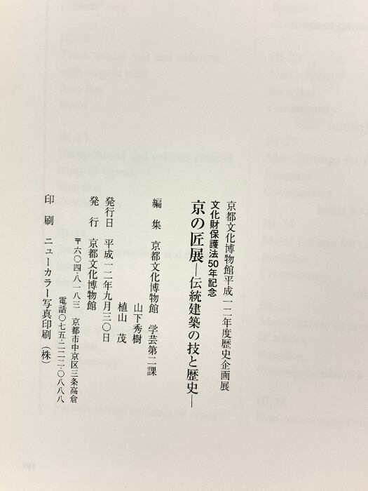 図録 京の匠展 伝統建築の技と歴史 文化財保護法50年記念 2000 京都文化博物館