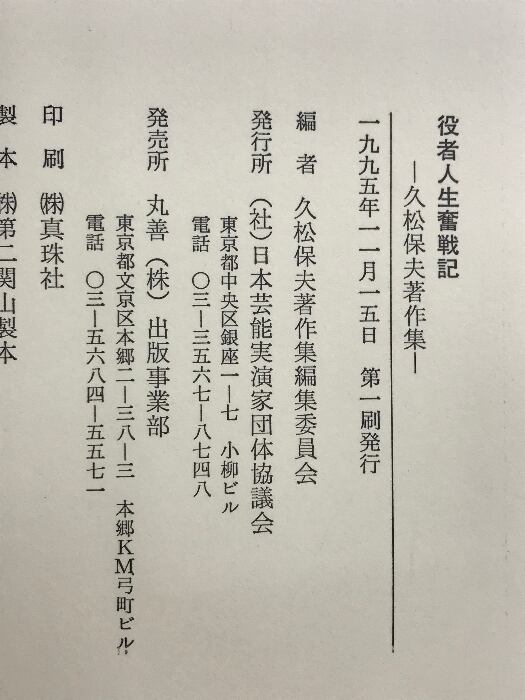 タイトル:役者人生奮戦記: 久松保夫著作集 日本芸能実演家団体協議会 久松 保夫