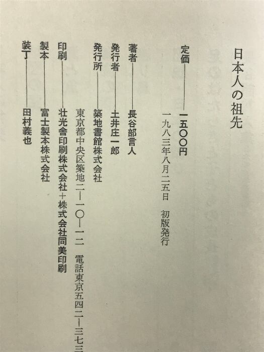 タイトル:日本人の祖先 築地書館 長谷部 言人