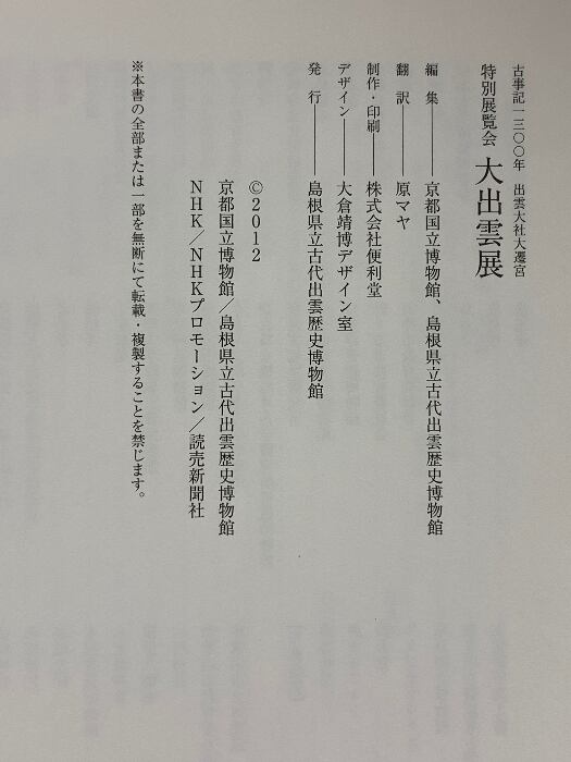 図録 大出雲展 古事記千三百年・出雲大社大還宮 2012 京都国立博物館 島根県立古代出雲歴史博物館