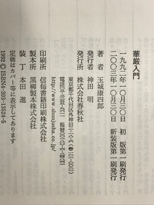 タイトル:華厳入門 春秋社 玉城 康四郎