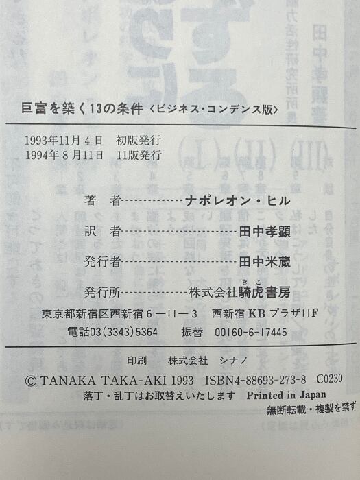 巨富を築く13の条件 ビジネス・コンデンス版 きこ書房 ナポレオン・ヒル