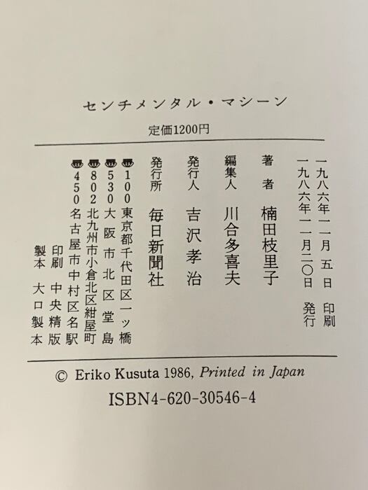タイトル:センチメンタル・マシーン 毎日新聞出版 楠田 枝里子