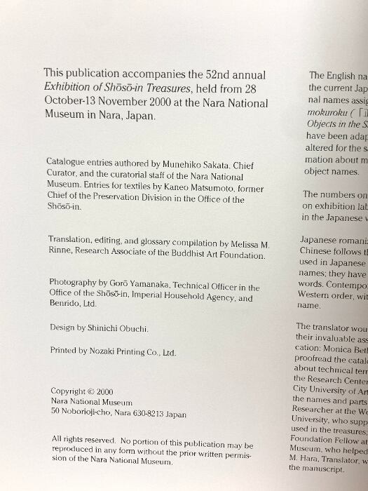図録 EXHIBITION OF SHOSO-IN TREASURES 2000 Nara National Museum