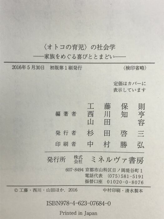 タイトル:〈オトコの育児〉の社会学:家族をめぐる喜びととまどい ミネルヴァ書房 工藤保則
