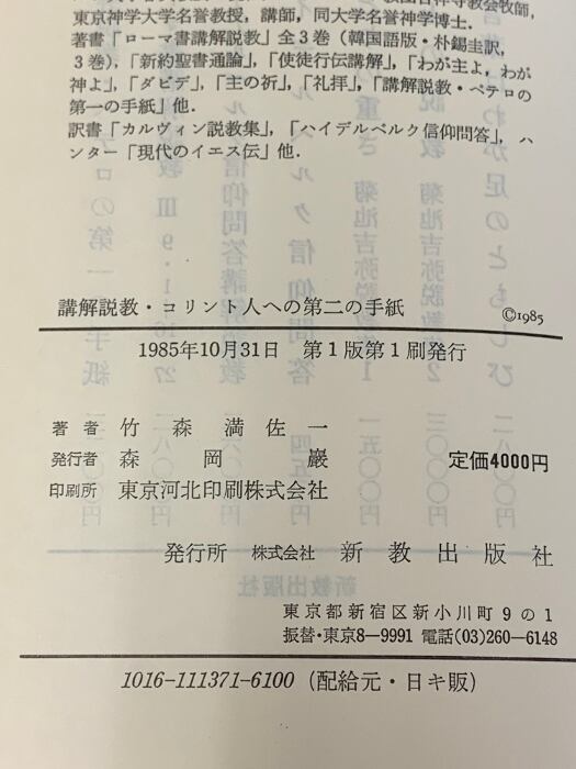 タイトル:講解説教コリント人への第二の手紙 新教出版社 竹森満佐一