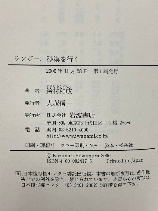タイトル:ランボー、砂漠を行く アフリカ書簡の謎 岩波書店 鈴村 和成