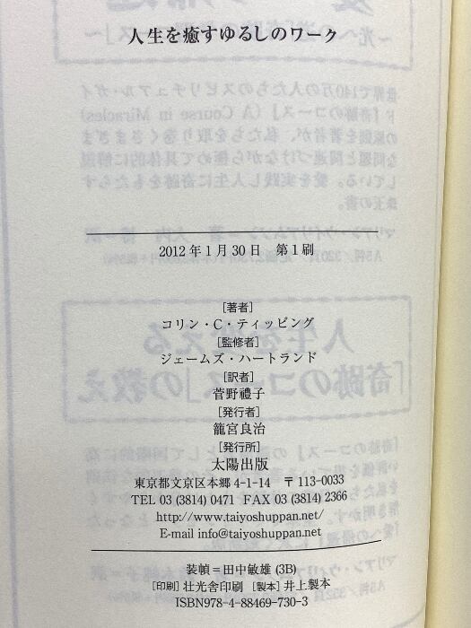 タイトル:人生を癒すゆるしのワーク 太陽出版 コリン・C・ティッピング