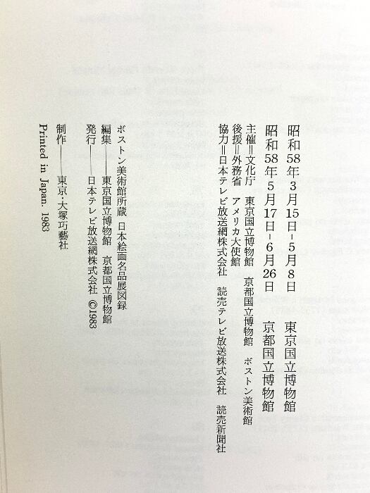 図録 ボストン美術館所蔵 日本絵画名品展 1983 日本テレビ放送網株式会社