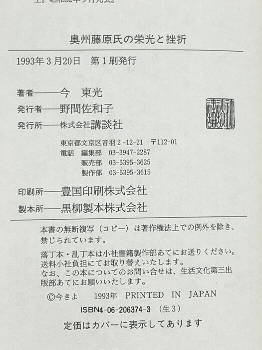 タイトル:奥州藤原氏の栄光と挫折 講談社 今 東光