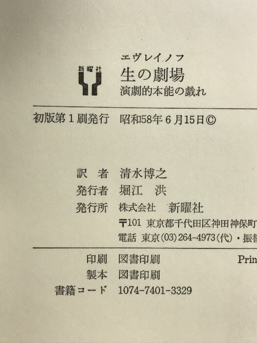 生の劇場―演劇的本能の戯れ 新曜社 エヴレイノフ 訳:清水博之
