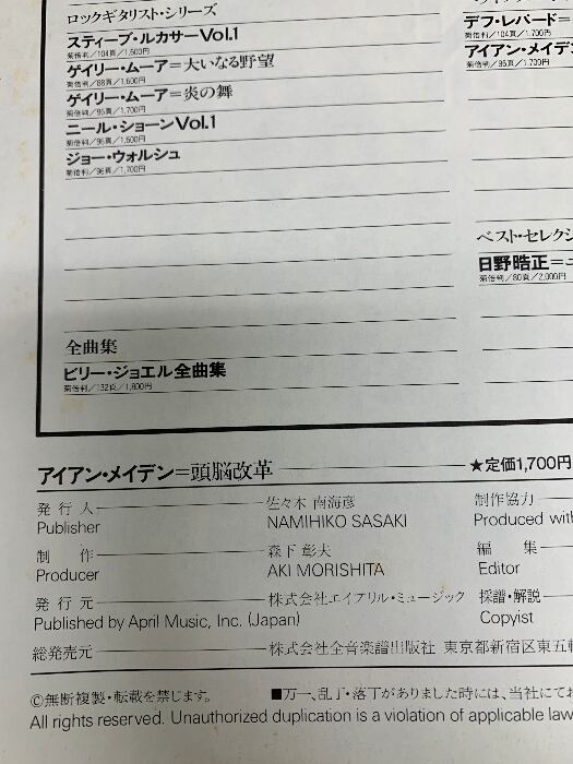 (BS)【ギタースコア】アイアン・メイデン/頭脳改革 全音楽譜出版 全音