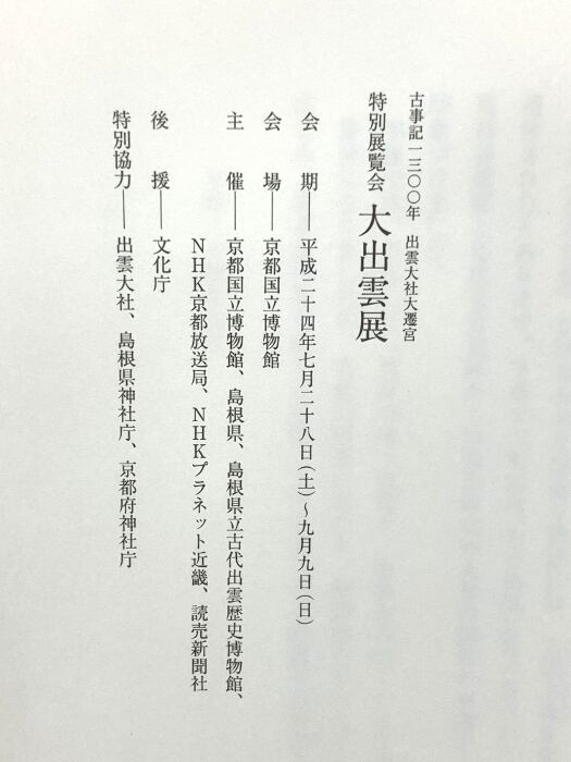 図録 大出雲展 古事記1300年・出雲大社大遷宮 2012 京都国立博物館