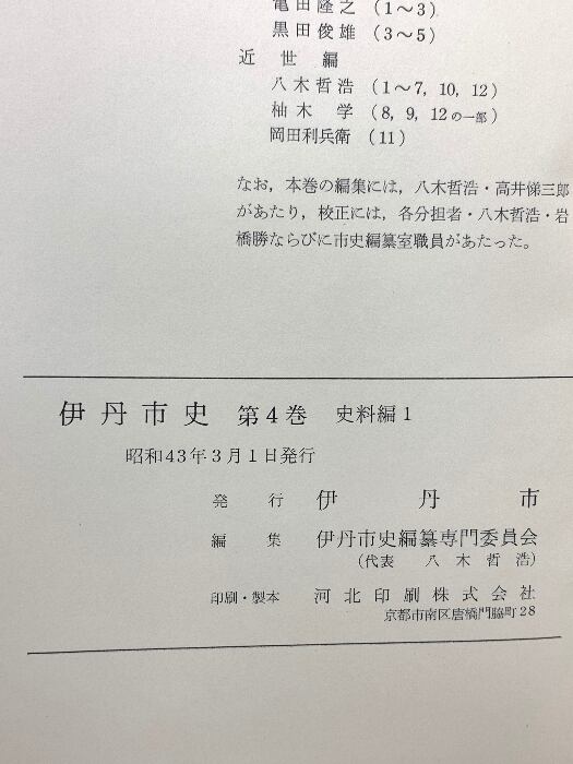 タイトル:伊丹市史 第四巻 資料編1 (兵庫県) 昭和43年発行