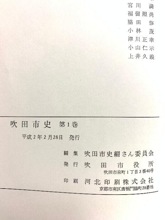 吹田市史 第一巻 (大阪府) 平成2年発行