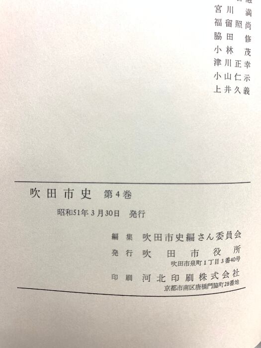 タイトル:吹田市史 第4巻 (大阪府) 昭和51年発行