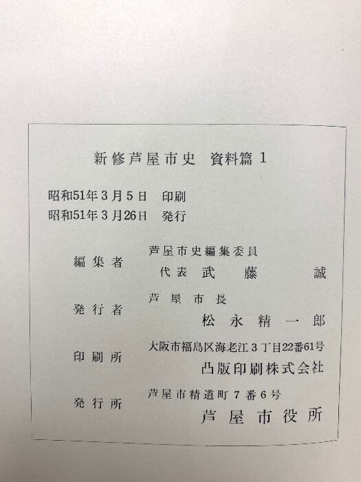 タイトル:芦屋市史 新修 資料篇1 (兵庫県) 昭和51年発行