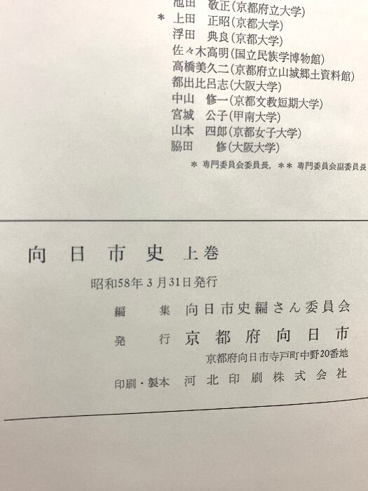 向日市史 上巻 (京都府) 昭和58年発行