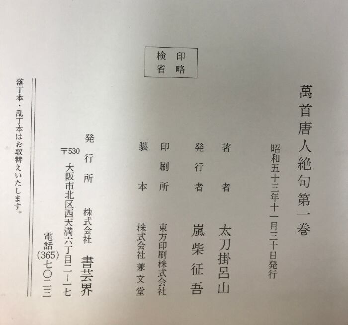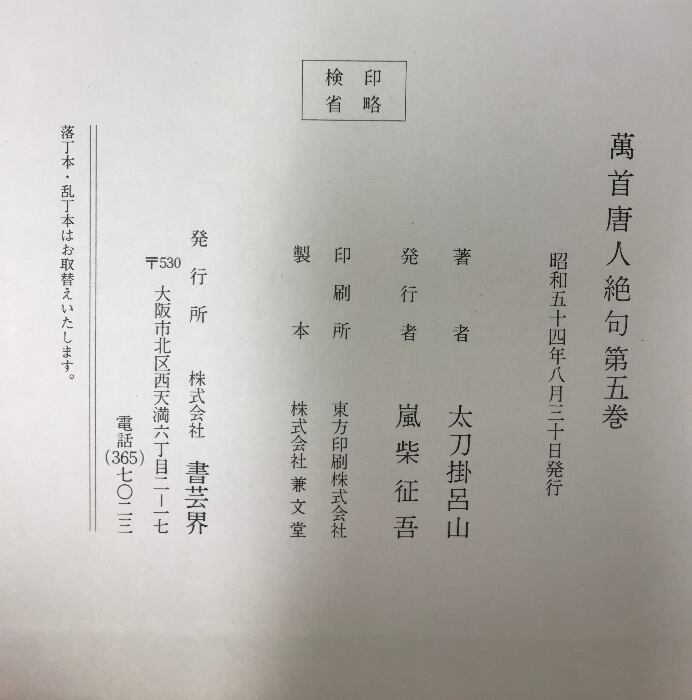 タイトル:萬首唐人絶句(1~5巻/全5冊セット)発行:株式会社書芸界 著:太刀掛呂山 昭和53年~昭和54年
