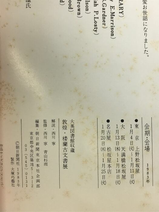 【図録】大英図書館収蔵 敦煌・楼蘭古文書展 朝日新聞社 監修:西川寧・青山杉雨 1983年