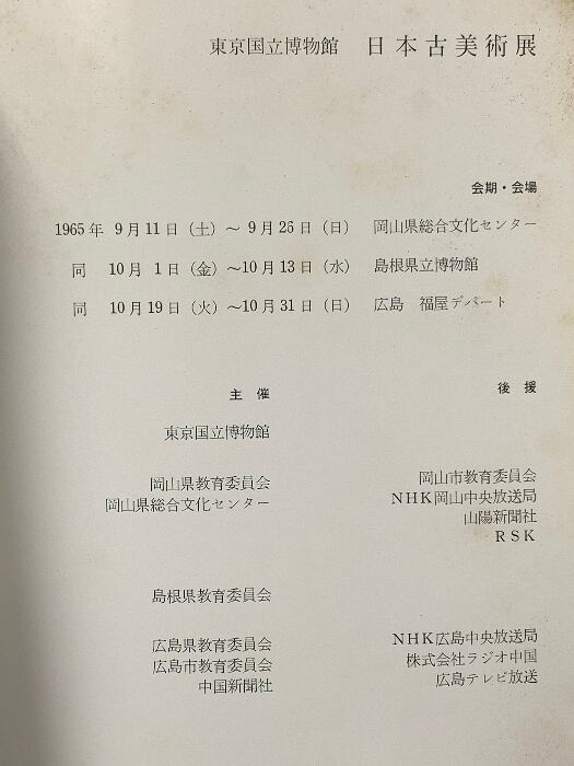 図録 東京国立博物館 日本古美術館 1965
