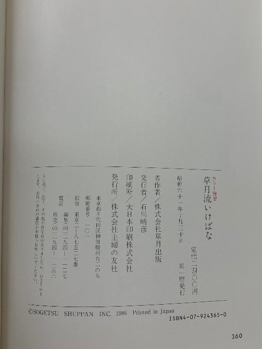 カラー独習 草月流いけばな 主婦の友社 勅使河原 宏