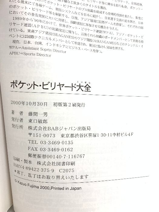 ポケット・ビリヤード大全 ビーエービージャパン 藤間 一男