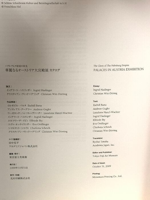 図録 華麗なるオーストラリア大宮殿 ハプスブルク帝国の栄光 2009 東京富士美術館
