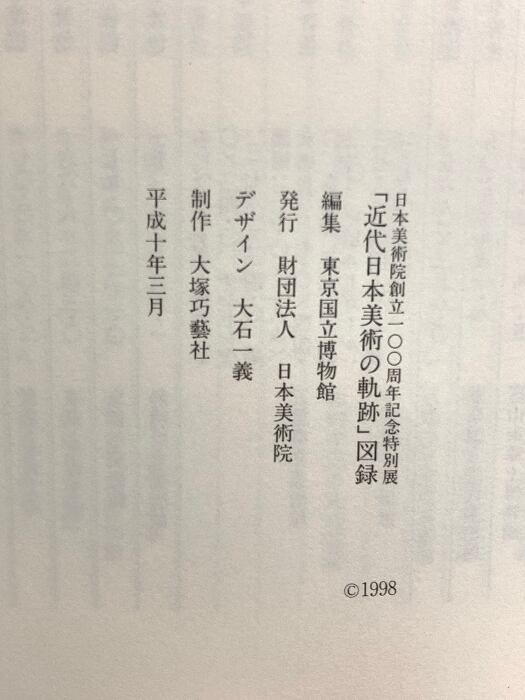 図録 近代日本美術の軌跡 日本美術院創立100周年記念特別展 1998 東京国立博物館