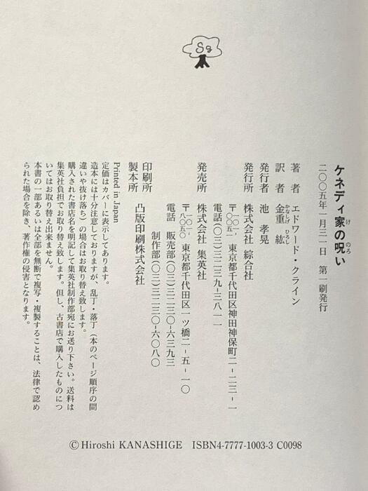 タイトル:ケネディ家の呪い 集英社 エドワード・クライン