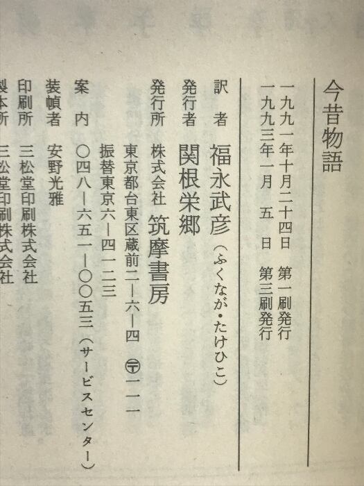 今昔物語 (ちくま文庫 ふ 10-2) 筑摩書房 福永 武彦