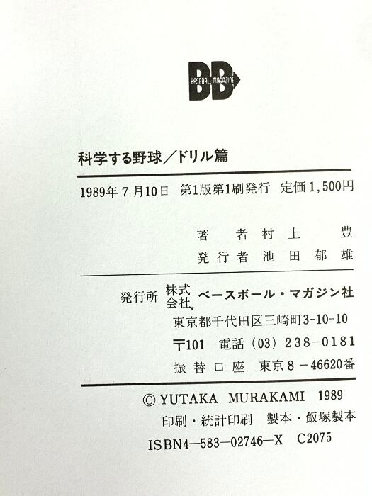 タイトル:科学する野球 ドリル篇 ベースボール・マガジン社 村上 豊