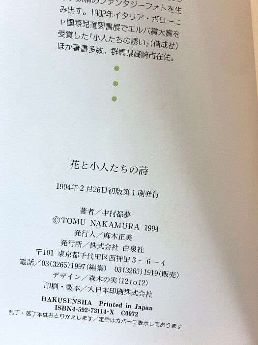 花と小人たちの詩 (MOE BOOKS) 白泉社 中村 都夢