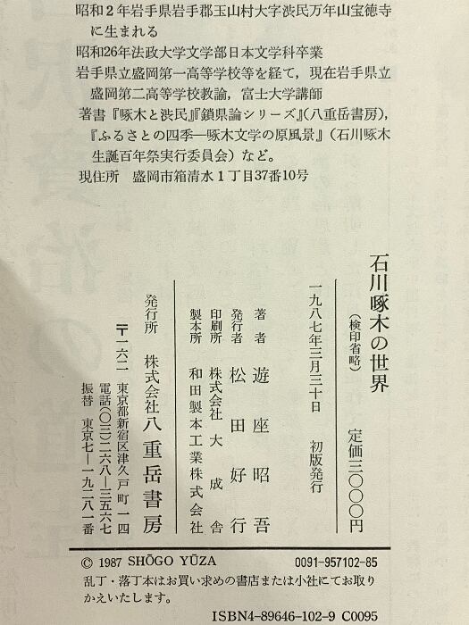 石川啄木の世界 八重岳書房 遊座 昭吾