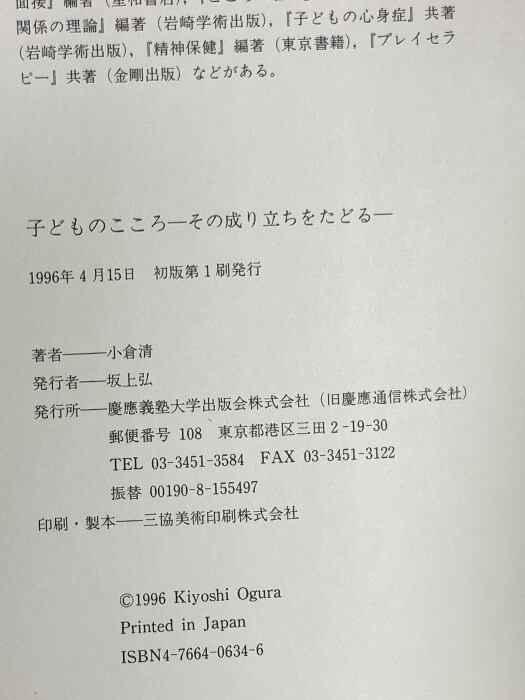 タイトル:子どものこころ: その成り立ちをたどる 慶應義塾大学出版会 小倉 清