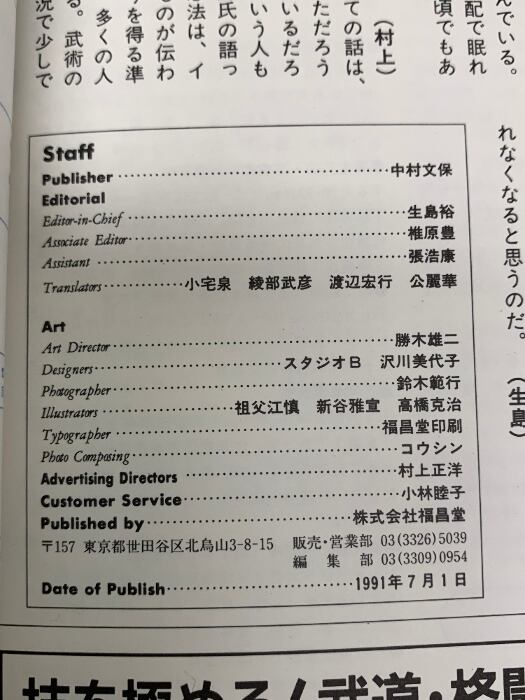 タイトル:武術 1991年春号 奇襲拳法・鴛鴦地功拳 嵩山少林拳法 福昌堂