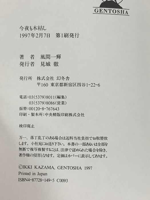 タイトル:今夜も木枯し 幻冬舎 風間 一輝