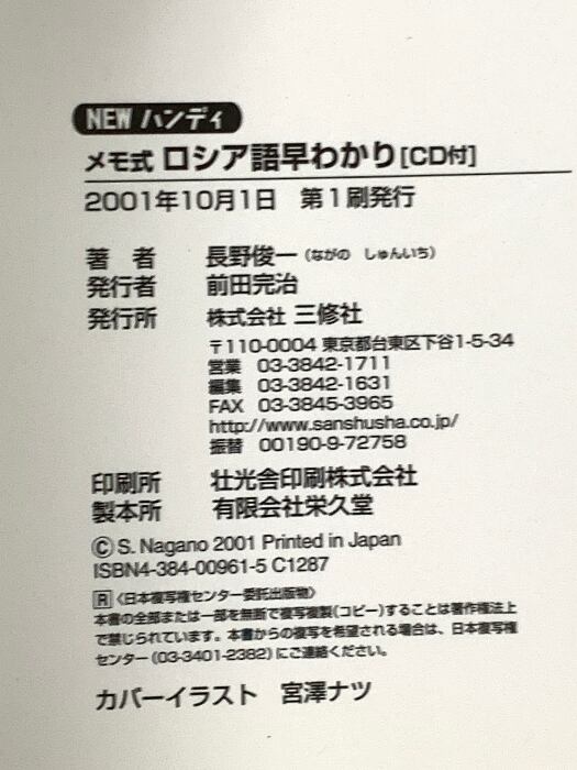 ロシア語早わかり NEWハンディ メモ式 三修社 長野 俊一