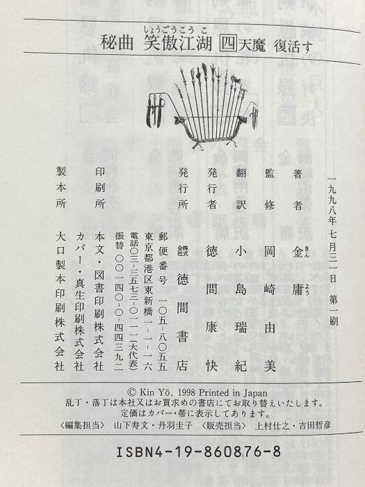 タイトル:秘曲笑傲江湖 第4巻 徳間書店 金 庸