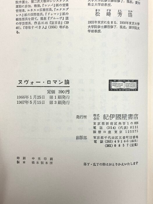 ヌヴォー・ロマン論 (1966年) (現代文芸評論叢書) 紀伊国屋書店 J・ブロック-ミシェル