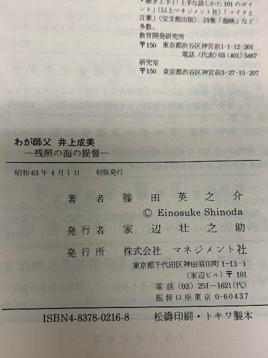 タイトル:わが師父井上成美: 残照の海の提督 マネジメント社 篠田 英之介
