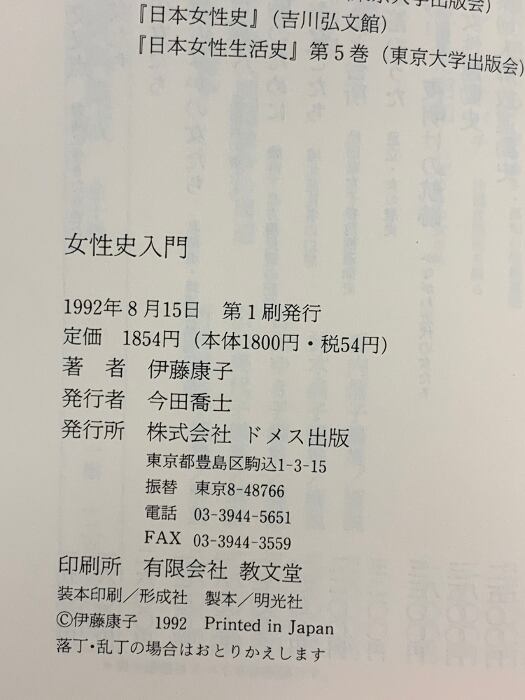 女性史入門 ドメス出版 伊藤 康子