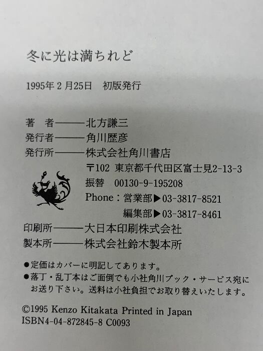 タイトル:冬に光は満ちれど KADOKAWA 北方 謙三