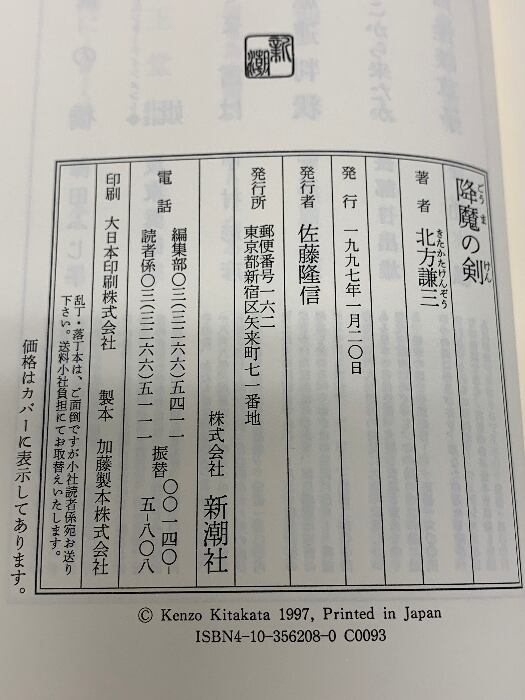タイトル:降魔の剣 新潮社 北方 謙三